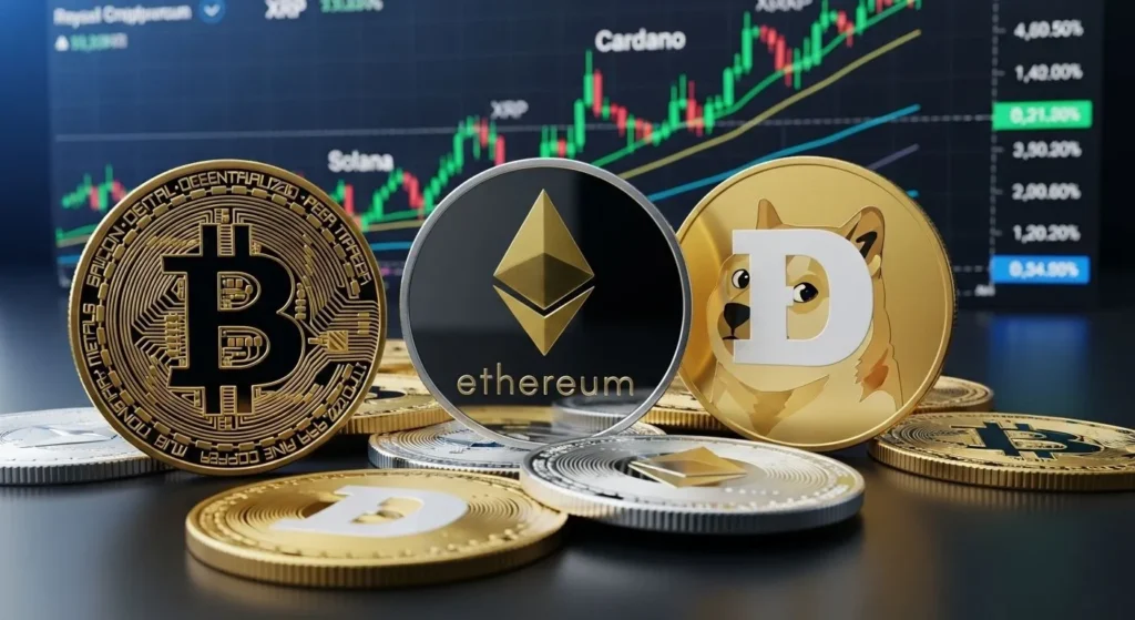 Altcoins são todas as criptomoedas que não são Bitcoin, como Ethereum, Solana e Cardano, muitas delas com funções avançadas, como contratos inteligentes.